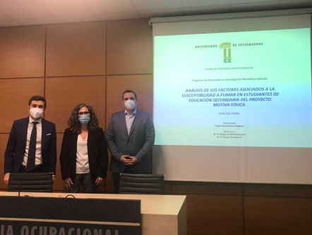 La investigadora del Grupo de Investigación en Salud y Cuidado (GISyC) Esperanza Santano Mogena es ya doctora. El pasado 9 de abril defendió su tesis titulada «Análisis de los Factores Asociados a la Susceptibilidad a Fumar en Estudiantes de Educación Secundaria del Proyecto Motiva Educa», la cual obtuvo la calificación máxima junto con el reconocimiento de Cum Laude.